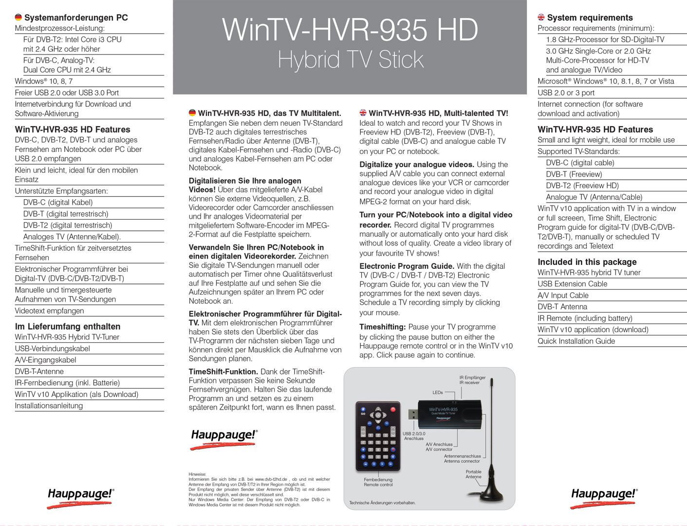 WinTV-HVR-935C Spezifikationen und Systemvoraussetzungen