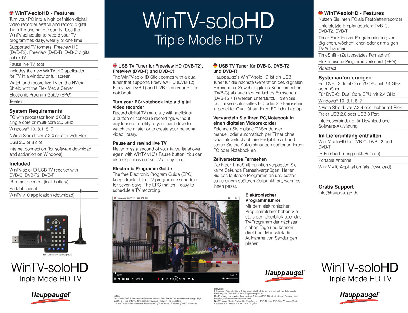 WinTV-soloHD Spezifikationen und Systemanforderungen