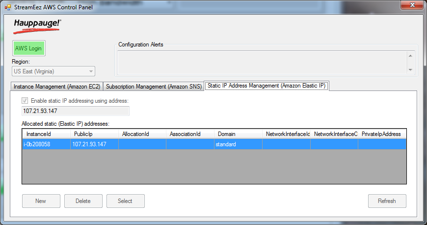 Hinweis: Wir empfehlen die Nutzung einer statischen IP Adresse ins StreamEez-Pro. Dies können Sie in der Amazon Web Service Management Bereich der StreamEez-Pro Anwendung einstellen. Siehe Bild rechts mit Titel