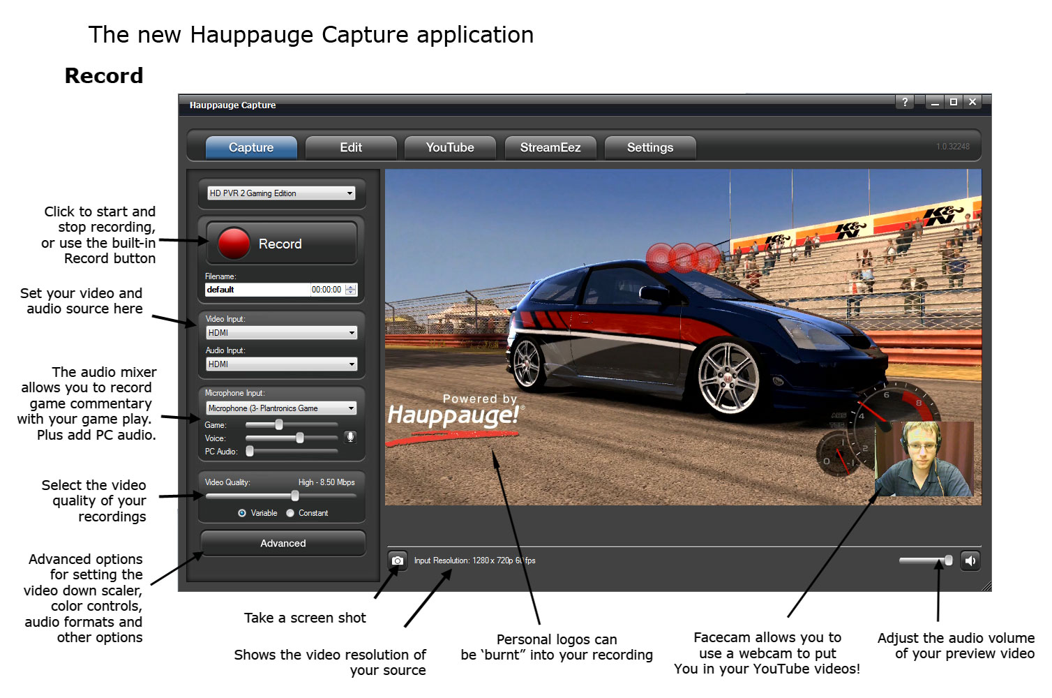 - Aufnehmen, Streamen von Xbox, PlayStation, Wii und PC-Spielen in HD